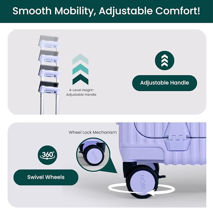 - Effortless Mobility & Comfort: 360° spinner wheels glide smoothly, and the 4-level height adjustable handle ensures easy handling. Bag holder studs let you secure extra bags, perfect for business trips and weekend getaways.