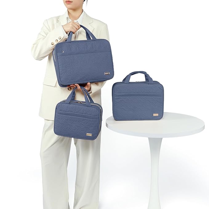 NISHEL Travel Toiletry Bag for women, Portable Hanging Organizer for Family-Sized Shampoo, Conditioner, Brushes Set, Makeup Accessories, Extra Large Size, Aegean-Blue