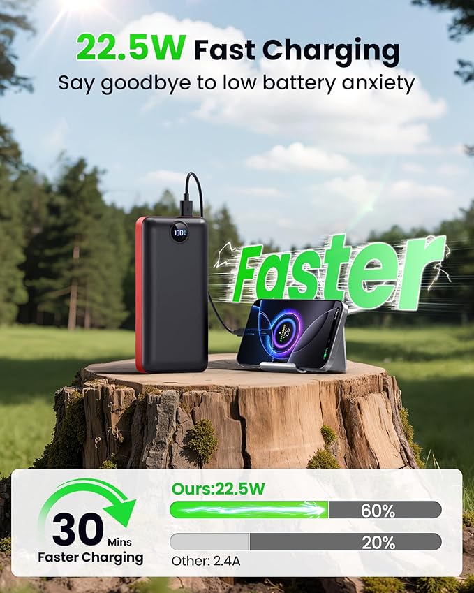 - Lastest 22.5W Fast Charging: This portable phone charger adopts the latest fast charging protocol output max 22.5W with USB port and 20W with USB C port, it only takes 20 minutes to charge your iPhone 16 from 20% to 60%. Significantly faster charging compared to standard chargers.