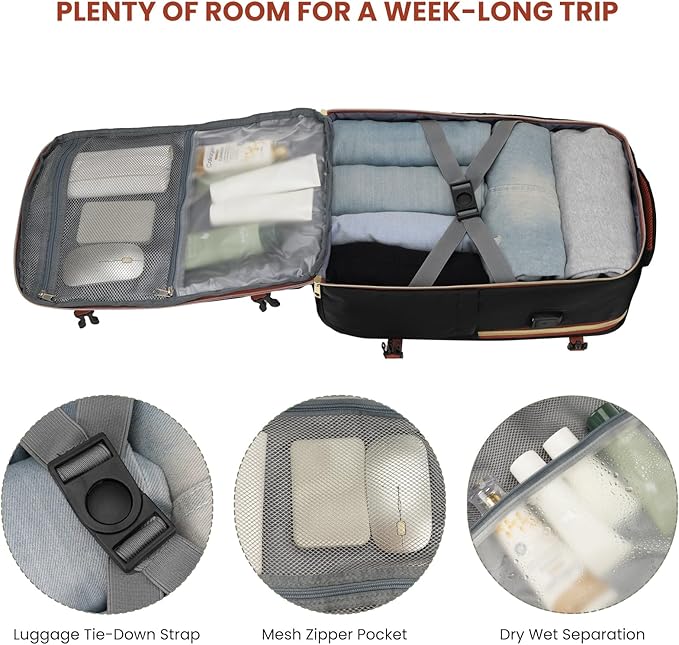 - 【Practical & Flight Approved】Featured a suitcase-style 180°opening for easy access to your belongings at security checkpoints, this large travel backpack fits perfectly overhead and under the seat which approved by Easy Jet, Spirit, Jet Blue, Frontier, United and other budget airlines.The carry on luggage makes your journey more enjoyable and convenient.