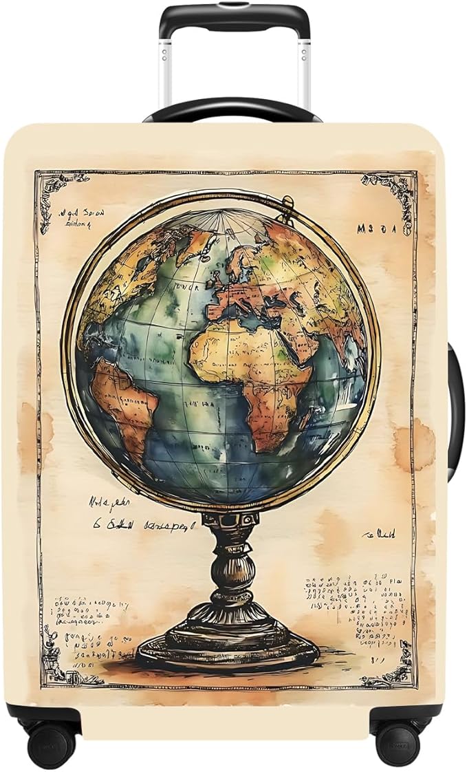 Luggage Cover Washable Suitcase Protector Anti-scratch Suitcase cover Fits 20-34 Inch Luggage (Globe, M(24-26inch suitcase))