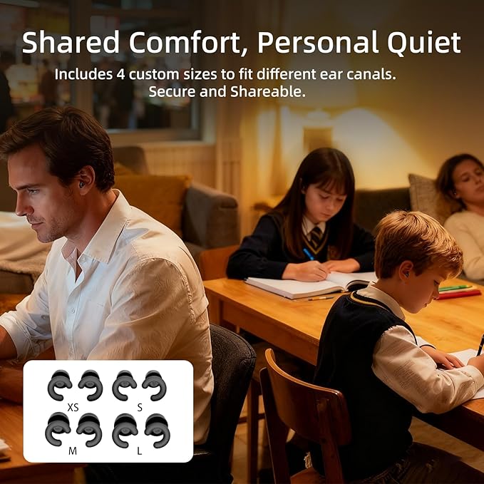 - 【4 Sizes for Perfect Seal & Sharing】: Get a complete set with 4 pairs of ear plugs in XS, S, M, and L sizes. This variety guarantees a comfortable and secure fit for most ear canals, and allows you to hygienically share the spare pairs with family or friends. It’s the economical and eco-friendly choice for discovering your ideal fit without waste.