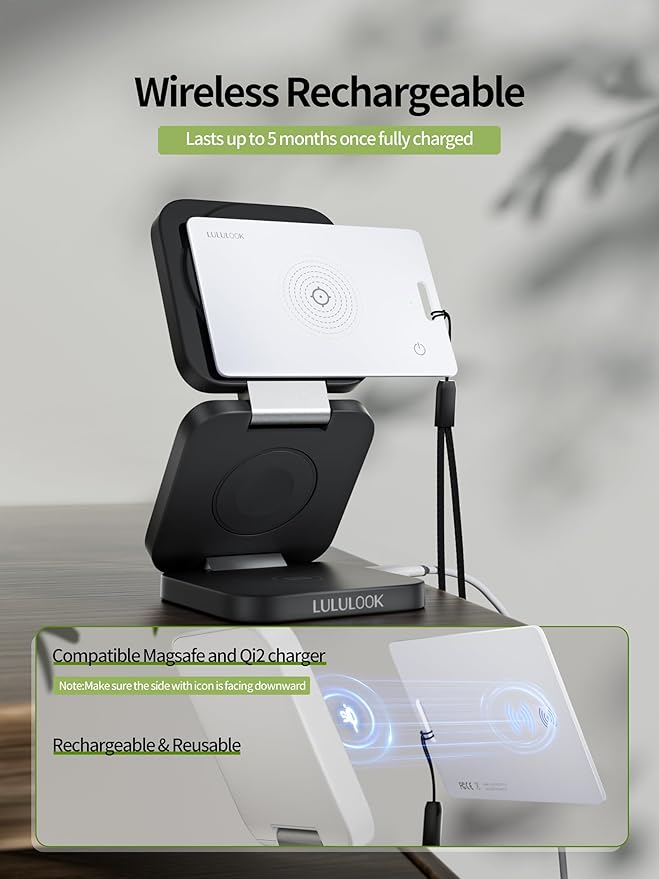 LULULOOK Wallet Tracker Card (iOS Only), Ultra Slim Airtag Wallet Works with Apple Find My, Wireless Rechargeable GPS Smartcard Tracker for Luggage, Tags, Passport, Purse, IP68 Waterproof, 3 Pack