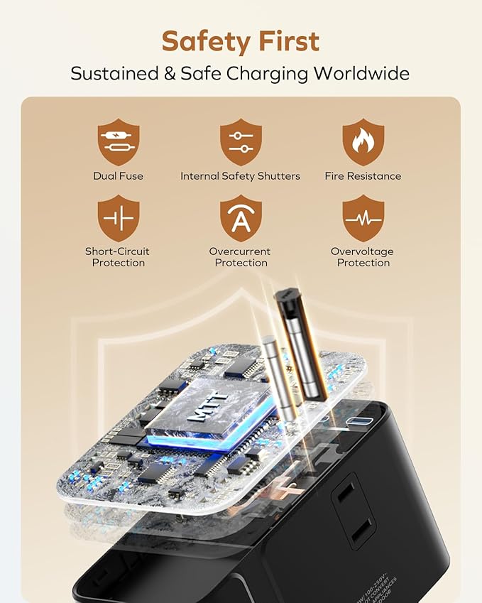 - SAFETY TRAVEL PLUG ADAPTER - Built-in 10A dual fuse for overload & short-circuit protection. It does not have surge protection and can be conveniently used on a cruise ship as well. Built-in 10A fuse, safety shutters, RoHS, CE, and FCC certifications, and our warranty provide extra peace of mind. [Please note that our adapter does NOT convert voltage]