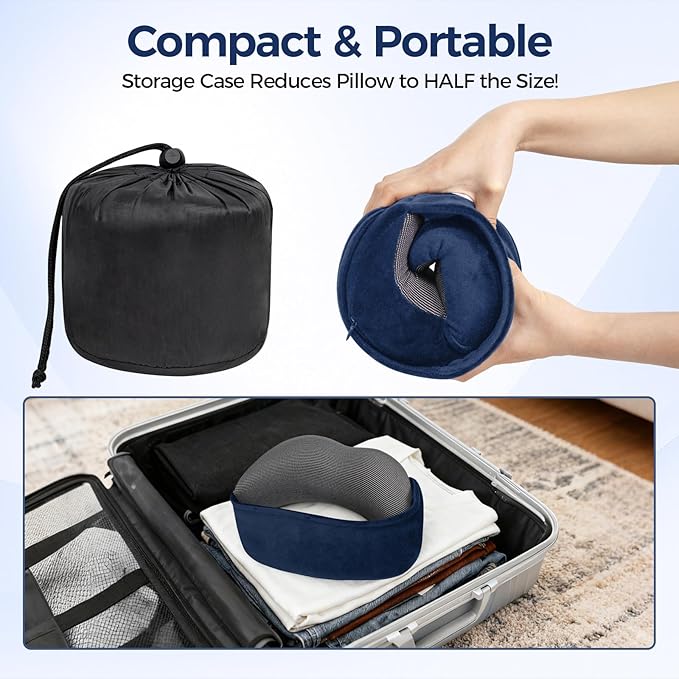 - 【Ultra-Lightweight & Portable】- Weighing only 8.7 oz, this compact pillow fits effortlessly into its included carry pouch. Attach it to your luggage via the handy loop for hassle-free travel. Perfect for long journeys and ideal as a thoughtful gift.