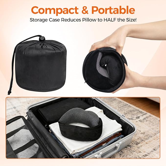 - 【Ultra-Lightweight & Portable】- Weighing only 8.7 oz, this compact pillow fits effortlessly into its included carry pouch. Attach it to your luggage via the handy loop for hassle-free travel. Perfect for long journeys and ideal as a thoughtful gift.