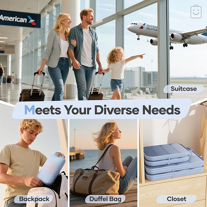 Veken 11 Set Compression Packing Cubes for Travel Essentials,Compressible Expandable Large Luggage Suitcase Organizer Bags for Clothing,Durable Space Saver Storage Bags with Toiletry Bags(Light Blue)
