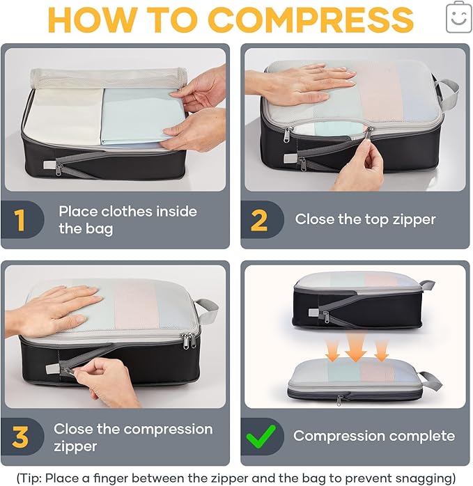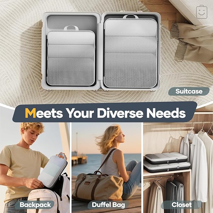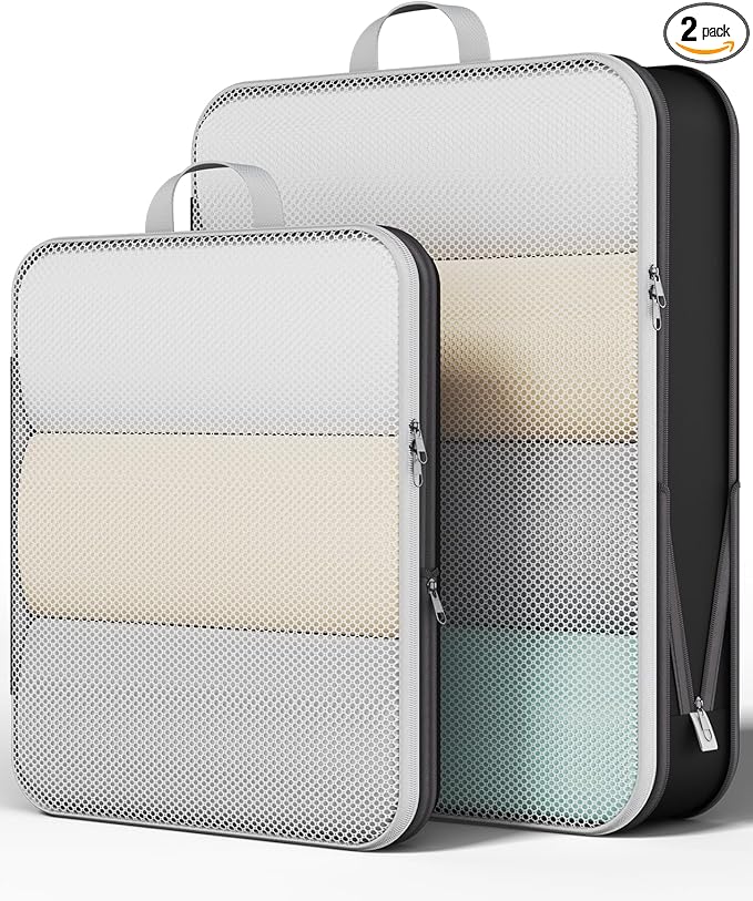 - Perfect Companion for Short Trips - This 2-piece compression set is the ideal partner for your carry-on luggage during short journeys.Whether for weekend getaways, backpacking adventures, or business trips, our compression cubes help you neatly sort and pack your essentials. After your trip, they also work great for home closet organization and seasonal storage.