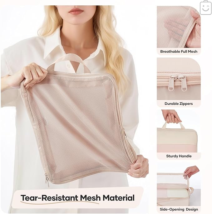 Veken 9/11 Set Compression Packing Cubes for Travel Essentials,Compressible Expandable Large Luggage Suitcase Organizer Bags for Clothing,Durable Space Saver Storage Bags with Toiletry Bags(Beige)