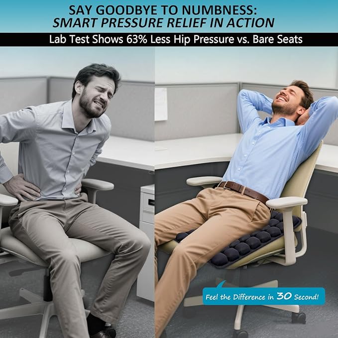 - 【Ergonomic Design】: This airplane seat travel cushion is equipped with 42 ergonomic airbags to dynamically distribute pressure on the hips, waist, coccyx and thighs. Effectively relieve fatigue caused by long-term sitting and enhance comfort.