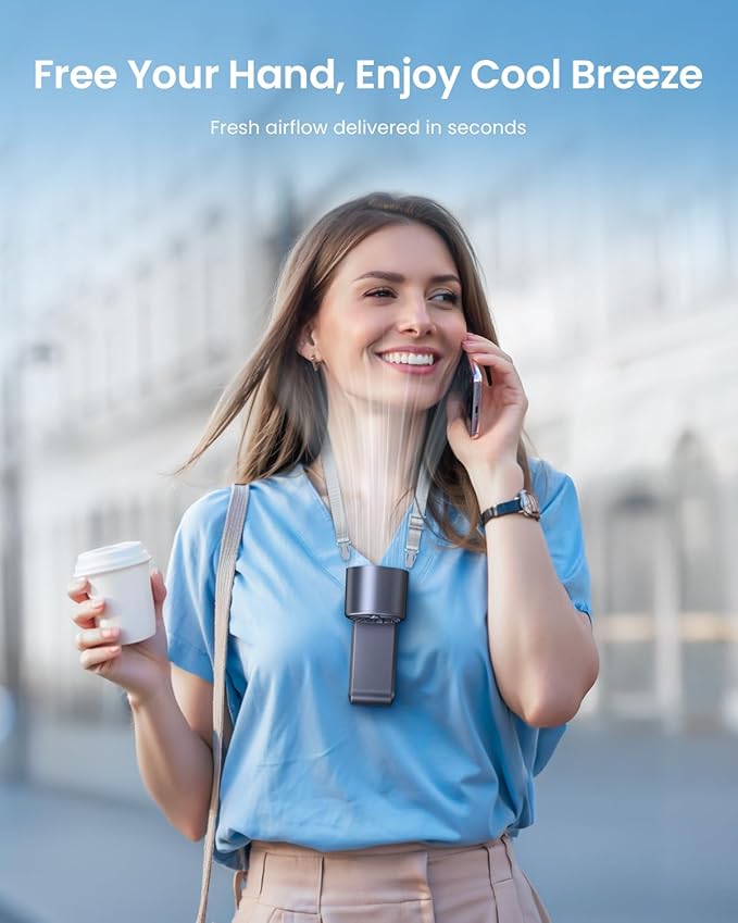 - Ultra-Fast Turbo Cooling: Features an advanced 7-blade design paired with a high-speed three-phase brushless motor, delivering a maximum wind speed of 8.5m/s – 2x faster than traditional hand held fans! With a 20000 rpm maximum speed, it instantly blows away the heat, keeping you cool and comfortable all day long
