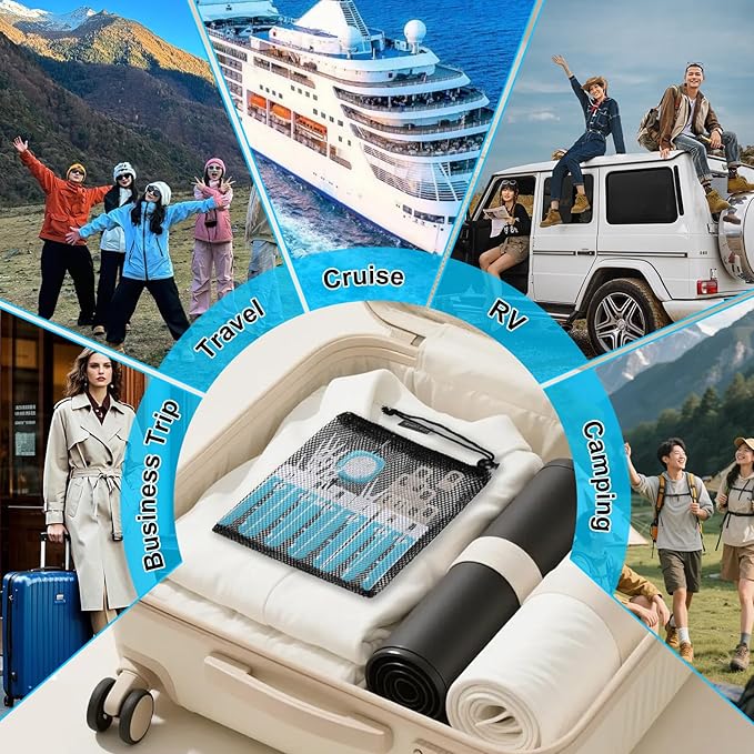 - All-in-One Travel Laundry Solution: 6 collapsible hangers + 10 anti-slip clips + 1 retractable clothesline (32.8FT) + 1 storage pouch. Ideal for cruises, camping, or RVs—maximizes luggage space while keeping clothes neat.