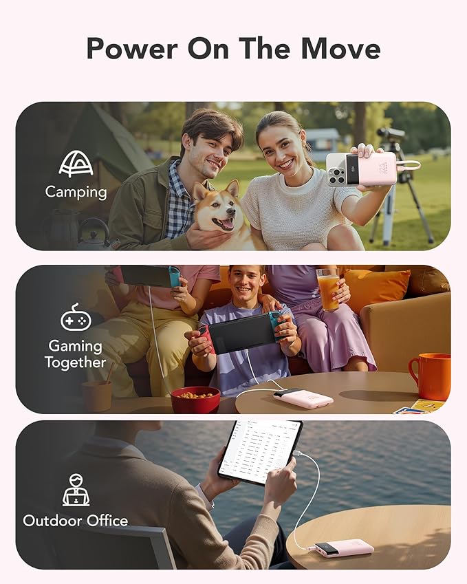 - 【Portable Charger with 2 Built-in Cables】 Features integrated iOS and USB-C output cables. Eliminate the need for loose wires and charge your iPhone, iPad, Samsung Galaxy, AirPods, and other USB-C devices directly. The ultimate hassle-free charging solution for daily use and travel essential.