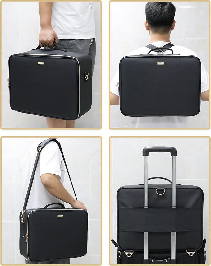- Easy to Carry: The extra large makeup case comes with a shoulder strap, use it as a shoulder bag, use it as backpack. A luggage strap allows attaching to the trolley case. Free your hands. Build-in shoulder pad for comfortable carry. It offers you an easy way to make up well when you the outside or traveling somewhere.