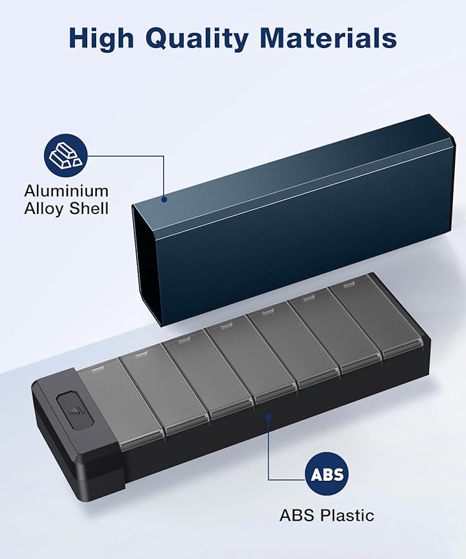 - Premium Material:This metal pill organizer is made of aluminiu alloy and ABS plastic, has better stability to hold the vitamin, medicine, supplements inside.