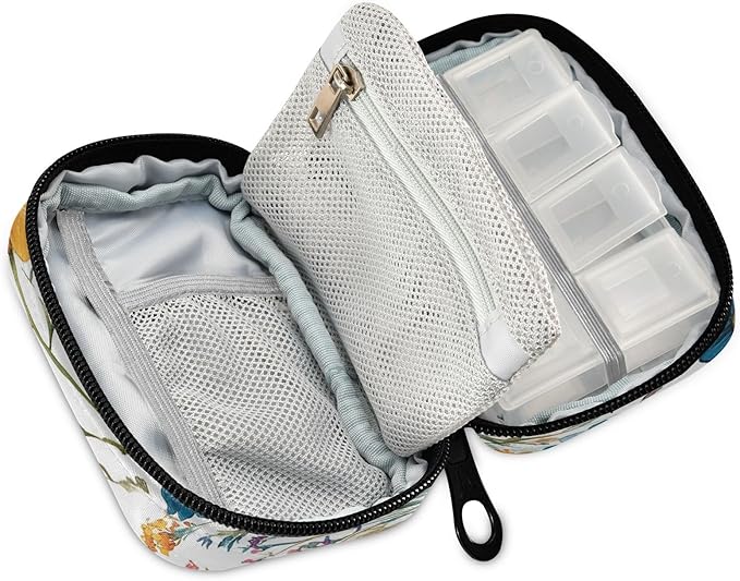 - Cute Pill Box: This pill case bag is made of designed twill fabric with zipper, keep your medications inside the pill box, protect privacy and the pills will not fall out
