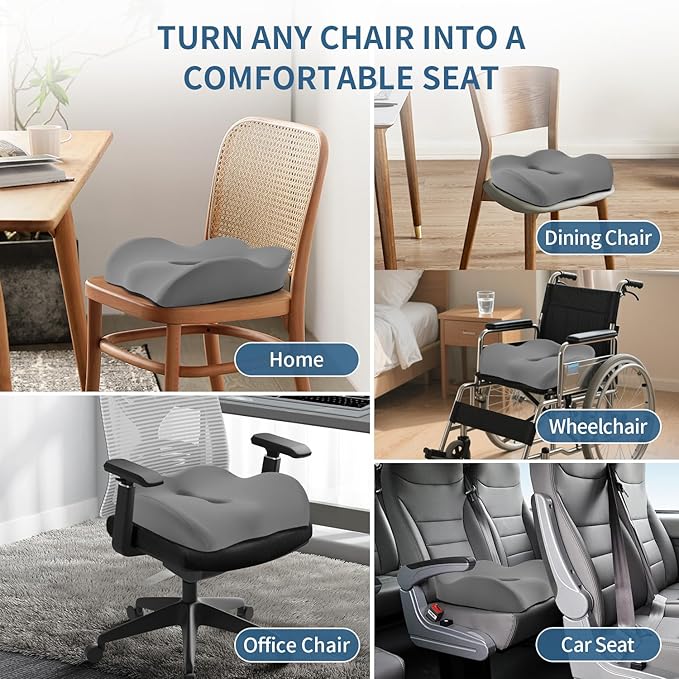 - Improves Posture for All-Day Comfort: The contoured surface of tailbone pain relief cushion cradles your hips to promote proper spinal alignment and upright sitting posture. It redistributes weight evenly across your lower body, ensuring sitting comfort