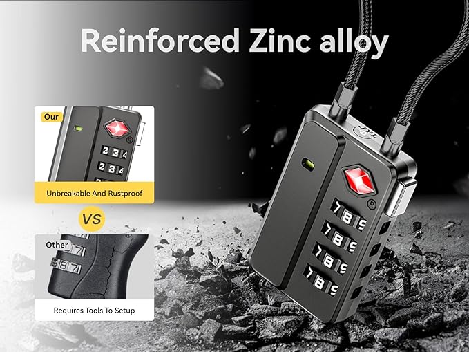 - SECURE ONE-TOUCH RESET: Reset 4-digit codes instantly with original password verification; TSA-approved for airport/gym use with tool-free convenience.
