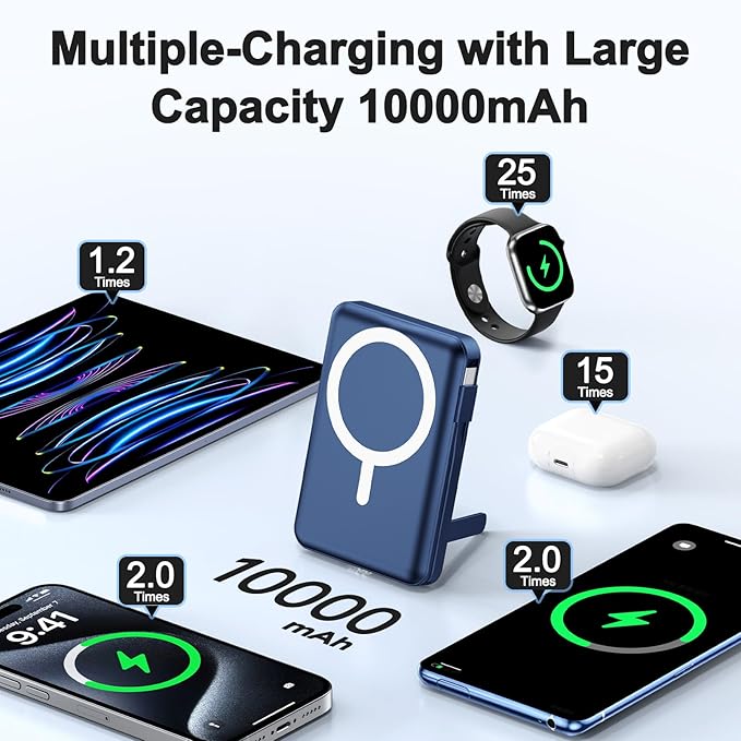 - View It Your Way: Enjoy hands-free video calls or streaming with the Versatile Viewing feature, thanks to the built-in foldable kickstand that supports your iPhone 17/16/15 in an upright position—perfect for home use or while on the move with this Magsafe battery pack and portable charger