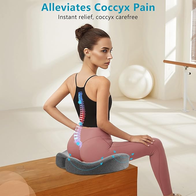 Seat Cushions for Office Chairs & Hip Pain Relief, Extra-Dense Coccyx Cushion with Sciatica Support, Ergonomic Design for Desk Chair, Car, Wheelchair, All-Day Comfort (Gray)