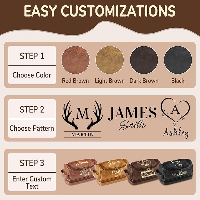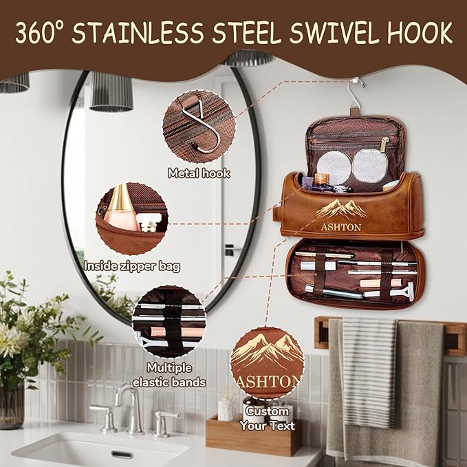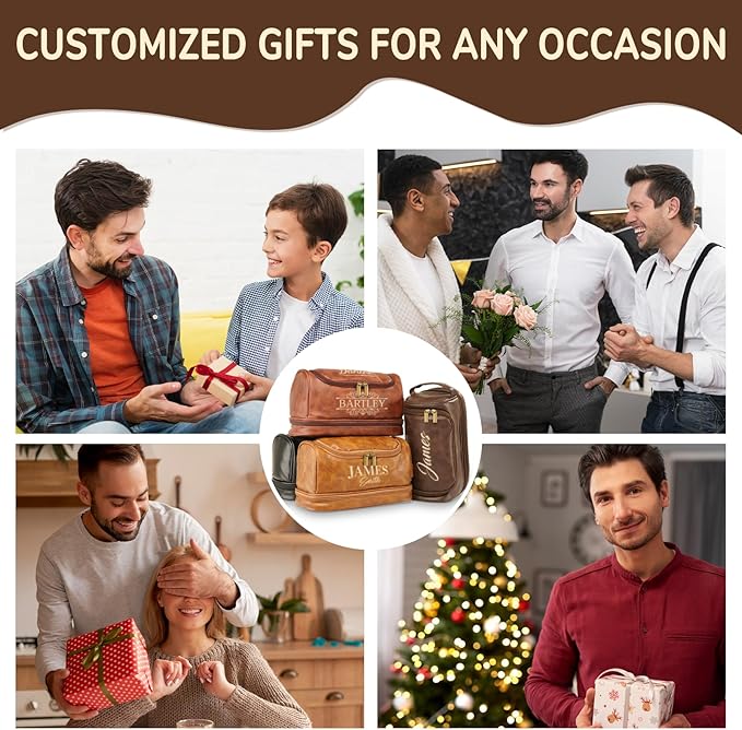 Personalized Toiletry Bag for Men - Custom Large Leather Dopp Kit with Engraved Name & Text, Personalized Gift for Groomsmen, Husband, Dad, Boyfriend, Birthday or Christmas Gifts for Men