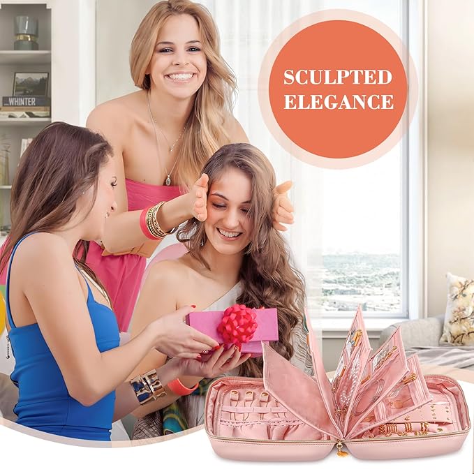 - 【Travel-Ready Portable Organizer】This travel jewelry organizer is your perfect trip companion. At 9.8×7.1×3.1 inches, it’s compact yet roomy enough for travel or daily use—easily fits in suitcases, tote bags, or backpacks, ideal for weekend getaways or business trips. The upgraded secure zipper keeps your jewelry in place, preventing loss. A must-have for travelers needing organized, protected jewelry on the go.