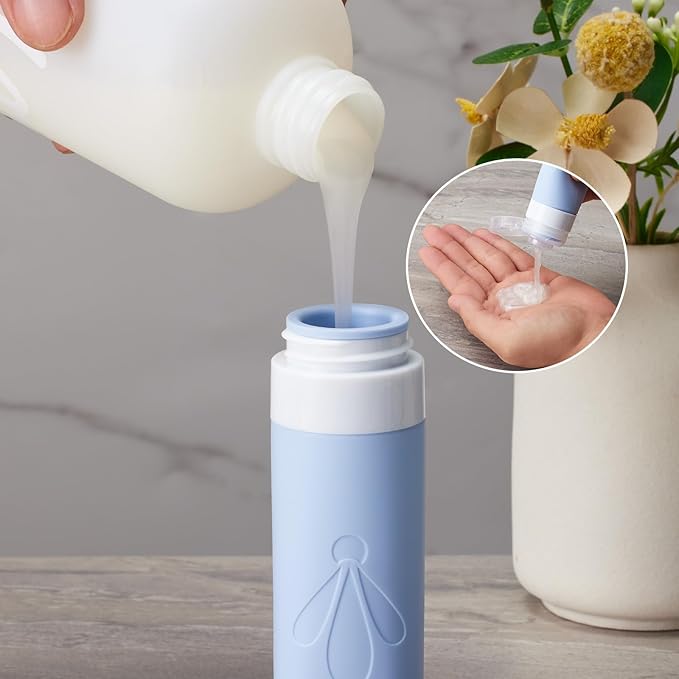 - Premium Food-Grade Silicone & PET: our BPA Free travel toiletry containers are safe to use not only for your cosmetic liquids like shampoo, conditioner, facial cream or body lotion. but also ideal airplane travel essentials for your vitamins, pills or jewelries. Plus they are dishwasher-safe for reuse.