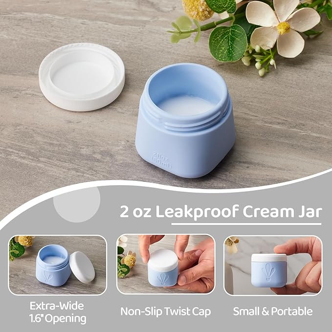 - 2oz Wide-Mouth Silicone Cream Jars: Extra-wide 1.6-inch opening (4cm) allows easy scooping with fingers or spatulas, paired with anti-slip screw lids for leakproof storage of thick creams, balms, or serums. INSFIT small travel containers for creams are your ideal travel accessories.