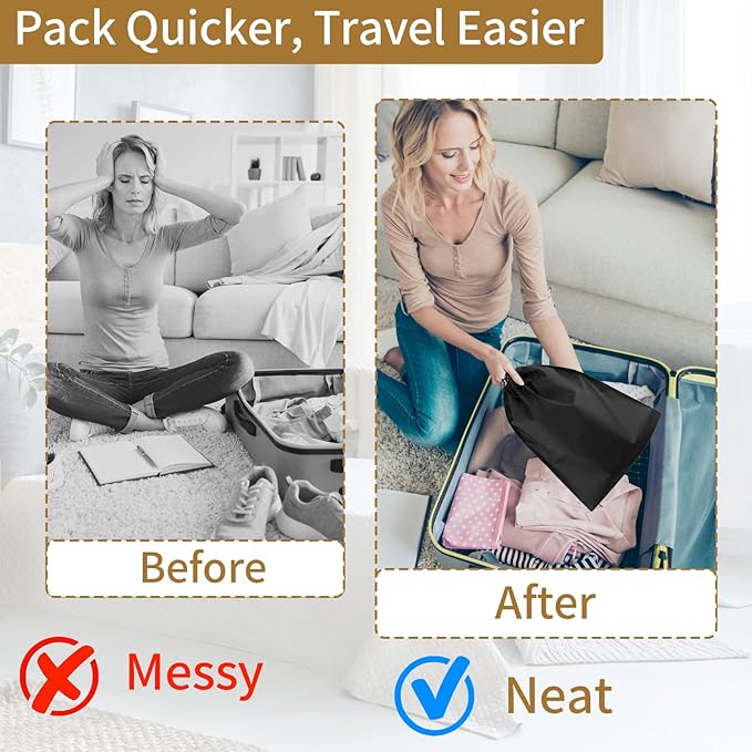 - DAILY & TRAVEL ESSENTIAL: These shoe bags for travel can protect your items against dirt, and help you pack luggage neat and quickly. Your essential travel accessories
