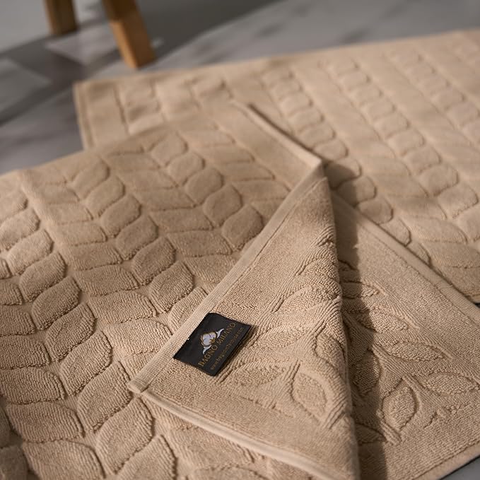 BAGNO MILANO Turkish Bath Towels, Soft Plush Jacquard Luxury Bath Towels, Quick Dry Towel Set (Latte, 2 Pcs Bathmat Set)