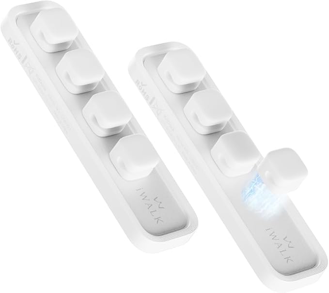 iWALK Magnetic Cable Holder, Reusable Adhesive Desktop Cord Organizer for 2-6mm Cables,4 Clips for Lightning & USB C/Micro Cables,Sticks to Wood,Glass,Metal, Marble, 2-Pack,White