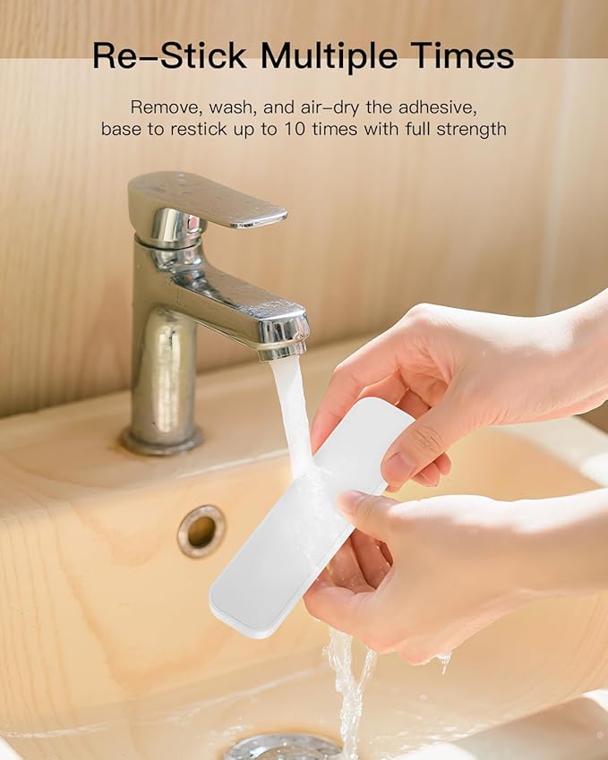 - Reusable Up to 10 Times:Peel off cleanly without residue. Wash the adhesive pad with water, air dry for five minutes, and stick again—strong hold preserved for up to 10 uses.
