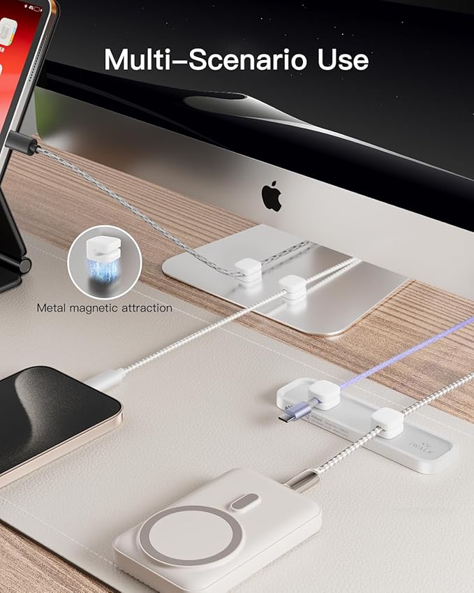 - Secure Magnetic Snap-On Base:Magnetic clips snap easily into place and firmly hold 2–6 mm cables. One-handed access makes it simple to manage cords without tangling or fumbling.