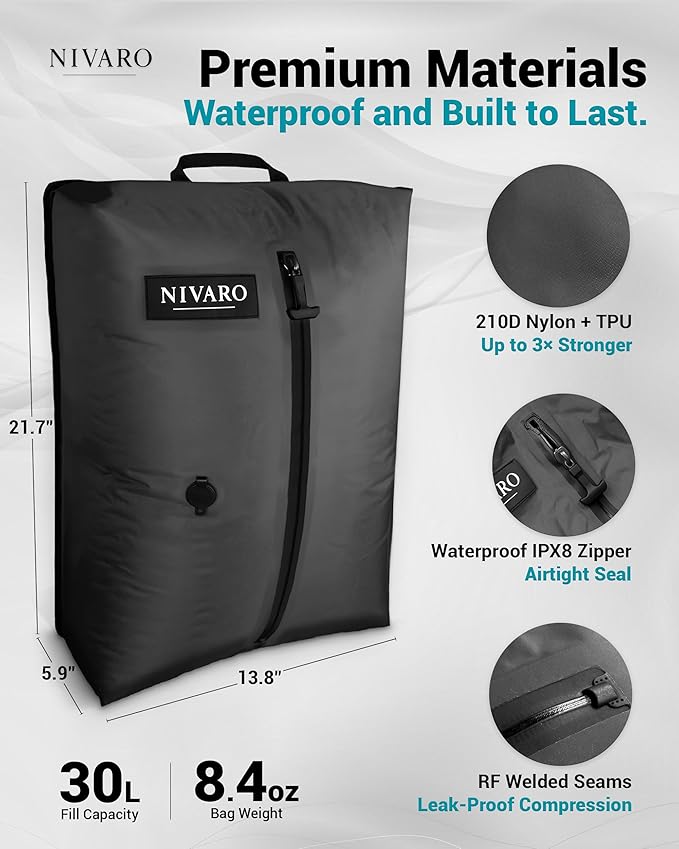 - FOR EVERY ADVENTURE - IPX8 waterproof and airtight, these reusable bags keep clothes compact, organized, and protected whether you’re flying, cruising, or exploring the outdoors