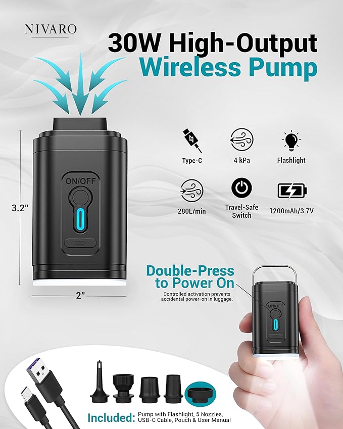 - Special Feature : Compact, IPX8 Waterproof, Vacuum Sealed, Wireless Pump 30W USB-C