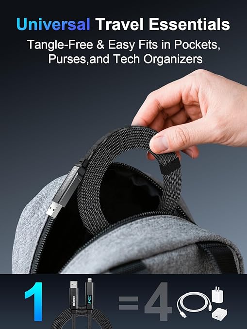 - [One Cable, Charge Everything: Universal 4-in-1 Design] Ditch the cable clutter! Haiteron's flat braided cable packs 4 essential connectors in one: USB-C to USB-C, USB-C to Light-ing, USB-A to USB-C, and USB-A to Light-ing. Effortlessly power and connect your iPhone 16/15/14, iPad, Samsung Galaxy, MacBook, iPad, and more. Your ultimate all-in-one charging solution for travel, work, or home.