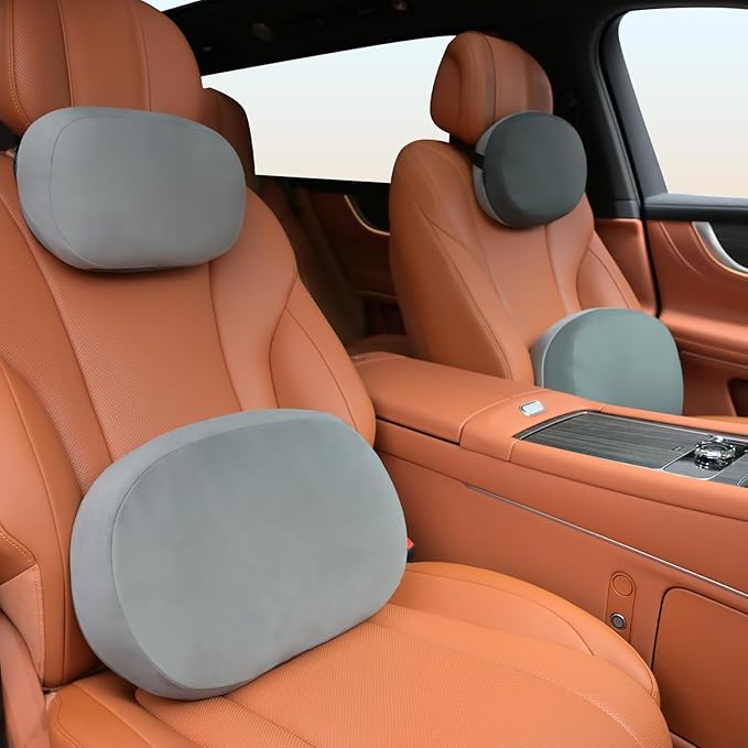 - 【Premium Material】Featuring breathable suede for cloud-soft smoothness, paired with fresh, odor-free and easy cleaning leather that prevents sticky sweat buildup—keeping your neck cool and dry in summer. The supportive cotton filling delivers plush-yet-firm support to cradle your head, neck, and lower back, reducing pressure points for fatigue-free long drives.