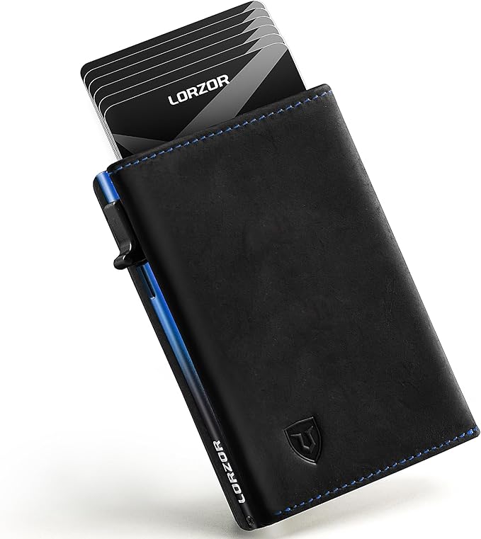 LORZOR Minimalist Wallet for Men with Credit Card Holder, Finest Full Grain Leather, Pop up Smart Wallet, Trifold Slim Wallet, RFID Blocking, Front Pocket, ID Window