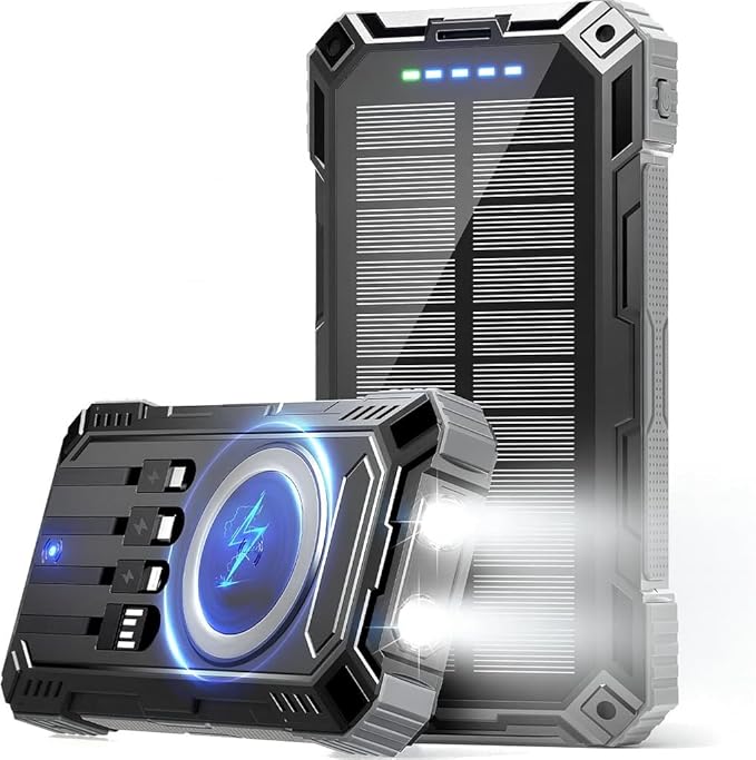 - 【All-in-One Charging—Wireless + Built-In Cables】No more tangled cords or forgotten wires. This mega-capacity bank comes with 4 integrated charging cables (USB-A input, USB-C, Micro-USB, Lightning), 2 USB ports, plus wireless charging, so you can power up to 6 devices simultaneously. Need speed? The 15W USB-C fast charge boosts your phone from 0% to 50% in just 30 minutes. Grab it, pack it, and power everything—without carrying extra cables.