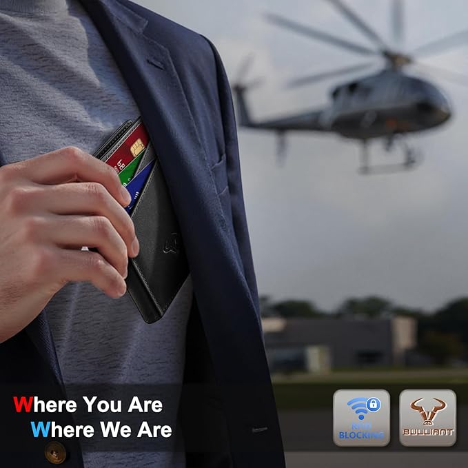 BULLIANT Men Wallet,Top Grain Leather Slim Wallet Magnetic Closure Simplifed Bill Folder RFID Blocking 11Cards