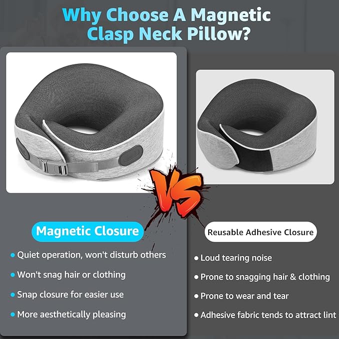 - Premium Memory Foam for Deep Relaxation - This ergonomically designed high-resilient memory foam travel neck pillow conforms to the curve of your neck, providing stable support.