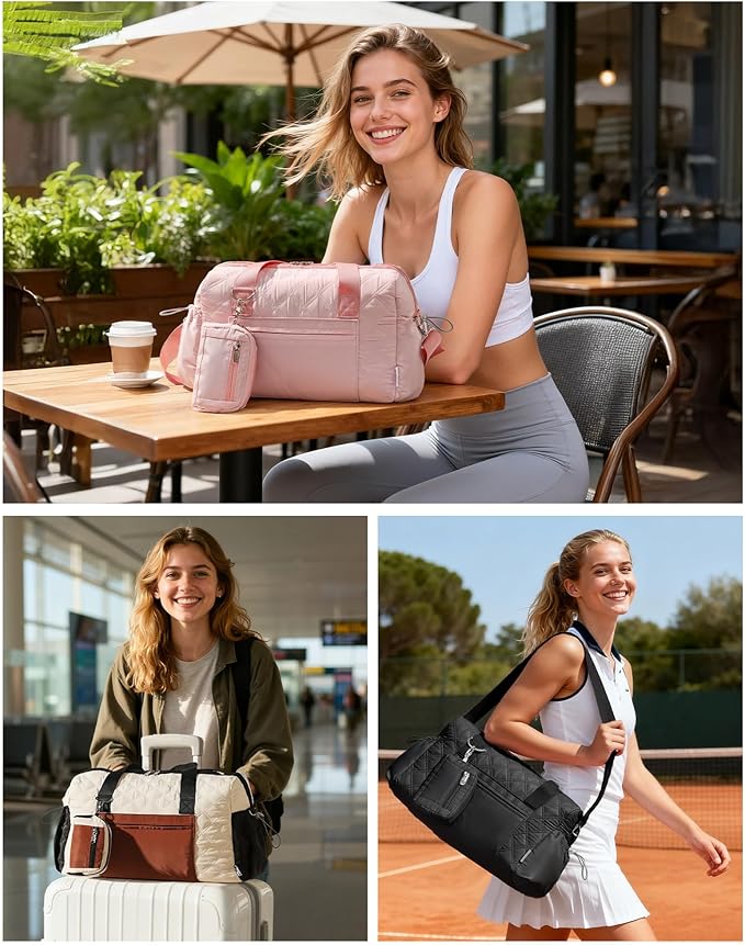 - Ultra-Light Puffer Gym Bag:Engineered with trendy, featherlight puffer material to eliminate bulk and weight—feel the difference instantly. At 14" x 10" x 6", this small gym bag fits perfectly into standard gym lockers and airplane under-seat spaces, making your transition from office professional to fitness enthusiast effortlessly chic.