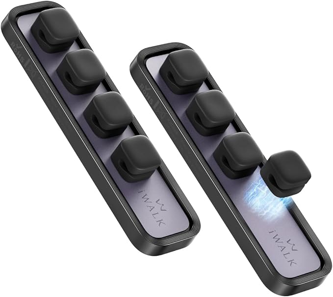 iWALK Magnetic Cable Holder,Reusable Adhesive Desktop Cord Organizer for 2-6mm Cables,4 Clips for Lightning & USB C/Micro Cables,Sticks to Wood,Glass,Metal, Marble,2-Pack,Black