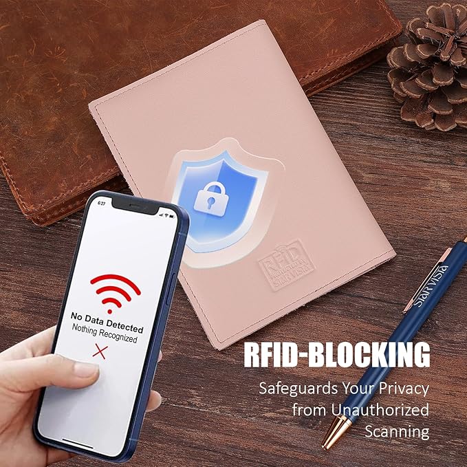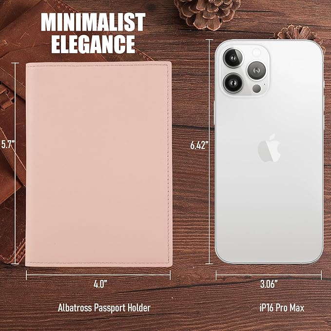 STAR VISTA Albatross Leather Travel Passport Holder, Minimalist Design, Calfskin Leather Case for Women and Men - Slim Passport Wallet, Bifold, RFID Blocking, with AirTag Holder, Pale Pink