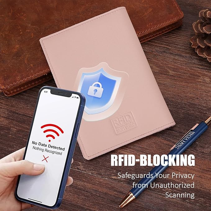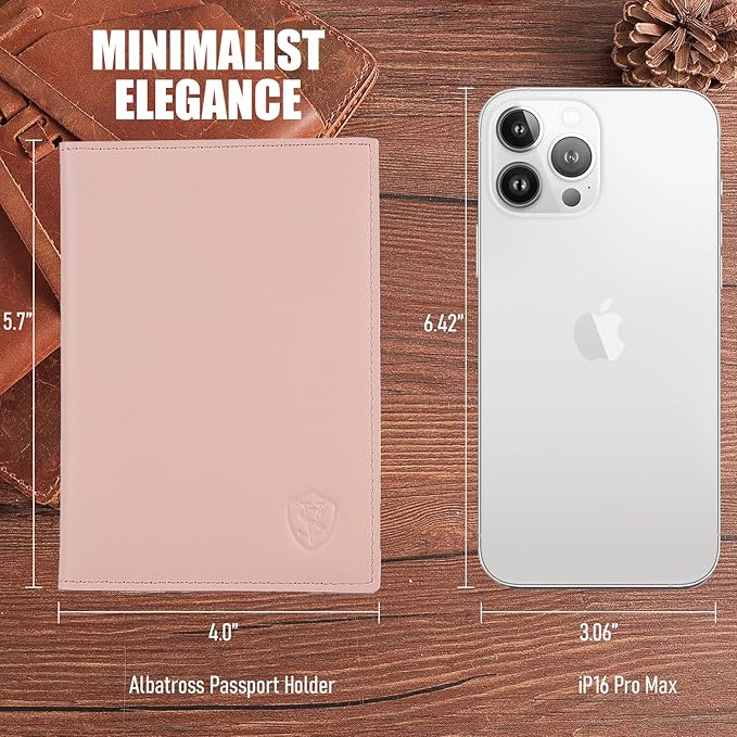 STAR VISTA Albatross Leather Travel Passport Holder, Minimalist Design, Calfskin Leather Case for Women and Men - Slim Passport Wallet, Bifold, RFID Blocking, Pale Pink