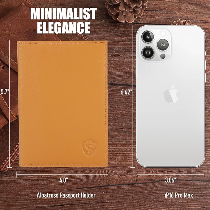 STAR VISTA Albatross Leather Travel Passport Holder, Minimalist Design, Calfskin Leather Case for Women and Men - Slim Passport Wallet, Bifold, RFID Blocking, Honey
