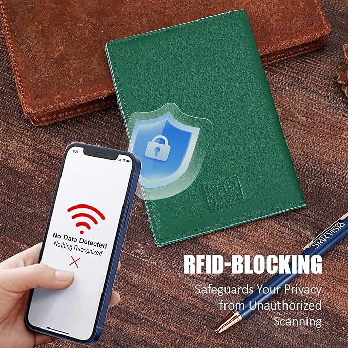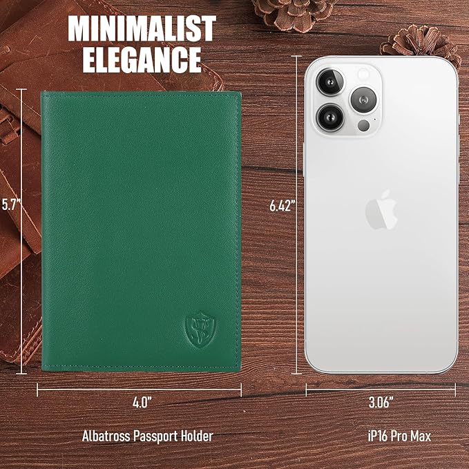 STAR VISTA Albatross Leather Travel Passport Holder, Minimalist Design, Calfskin Leather Case for Women and Men - Slim Passport Wallet, Bifold, RFID Blocking, Green