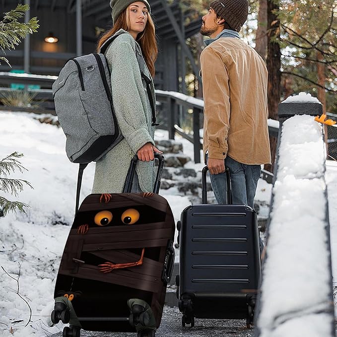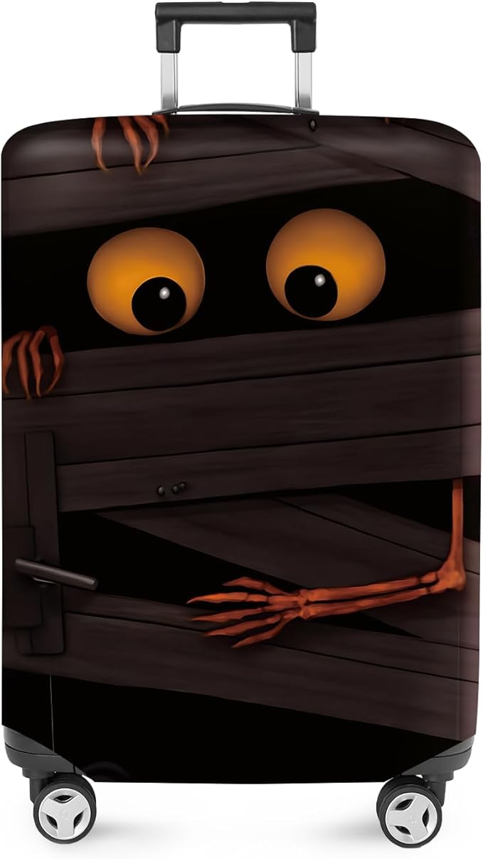 - Spooky and Fun Design: This luggage cover features a playful mummy design with large spooky eyes peeking from behind wooden planks, adding a festive Halloween touch to your luggage.