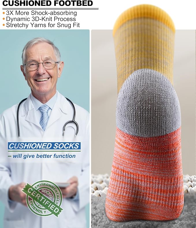• BREATHABLE -- Particular stitching construction with the unique moisture-wicking yarns creates anefficient ventilating system, These Bulliant running socks can keep feet dry and comfortable all the day;
