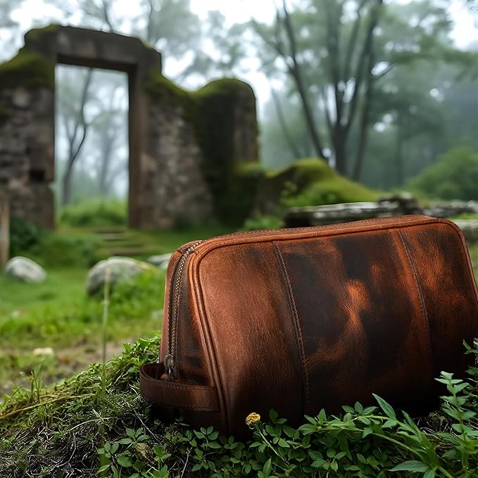 - HIGH QUALITY - This premium mens travel bag is crafted from 100% Full Grain Leather ensuring durability and luxury; waterproof lining protects toiletries and other travel essentials from spills and is easy to clean; includes a sturdy handle and durable YKK metal zippers.